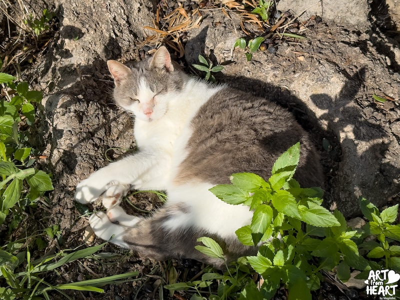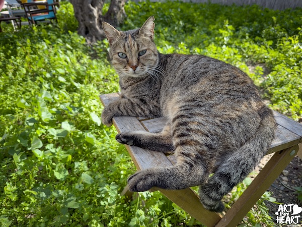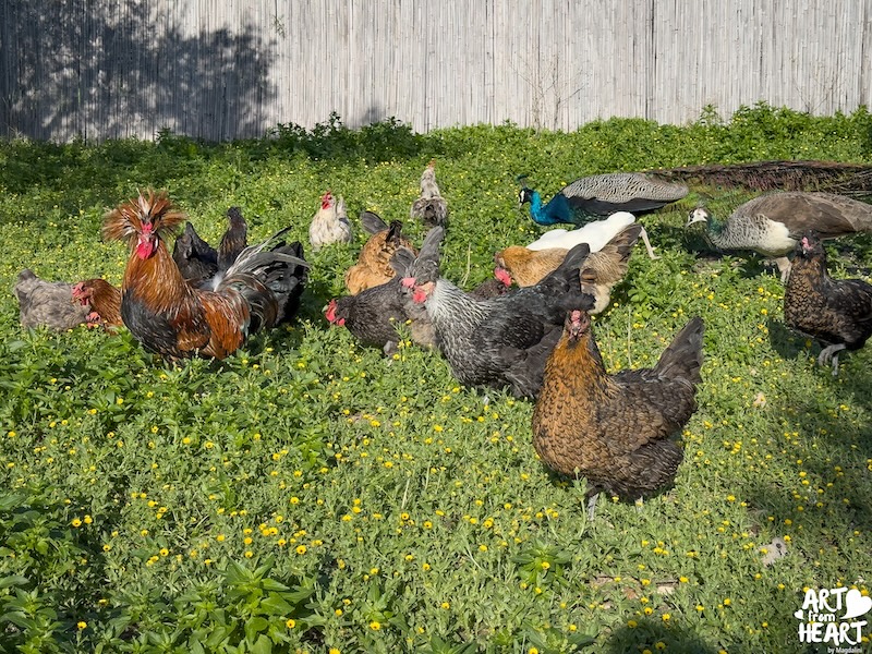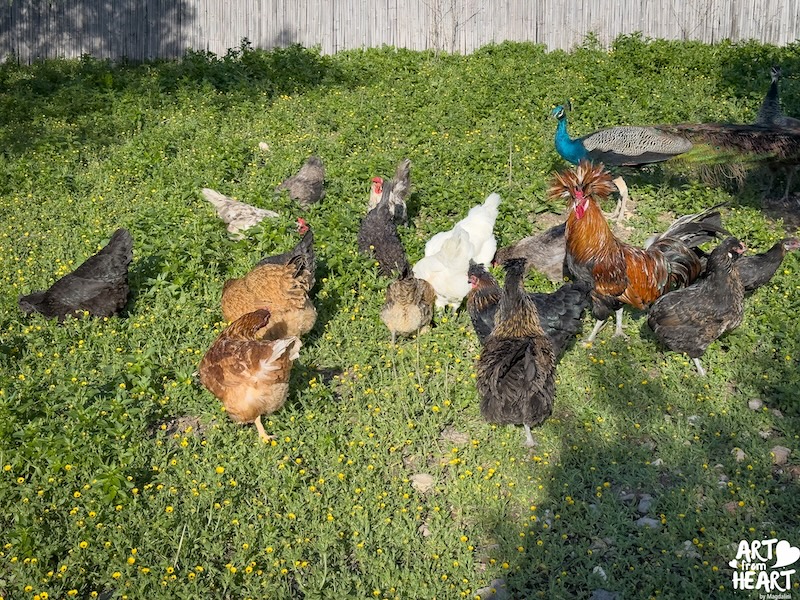 Zwischen meinen Olivenbäumen finden wir unsere Ruheoase. Dort sitzen wir oft zusammen, die selbsternante Tierdompteurin und meine Hunde, Katzen, Schildkröten, Pfaue und Hunde.